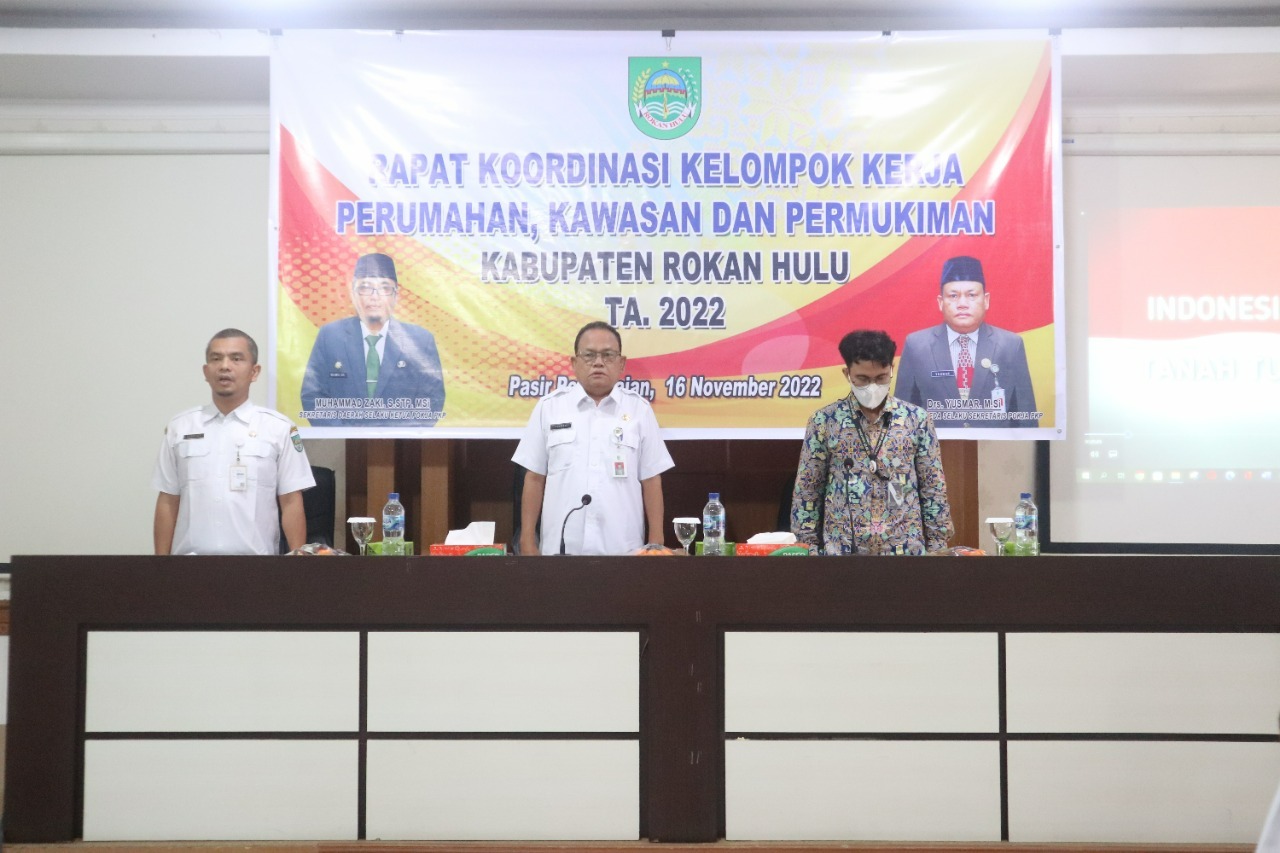 MEDIA CENTER ROHUL – Rapat Koordinasi Kelompok kerja perumahan, kawasan dan permukiman (PKP) Kabupaten Rokan Hulu Tahun Anggaran 2022 dipimpin langsung oleh Drs.Yusmar, MSi, Kepala Badan Perencanaan Pembangunan Daerah (BAPPEDA) Kabupaten Rokan Hulu, Rabu (16/11/2022) di aula Kantor Bappeda Rokan Hulu.