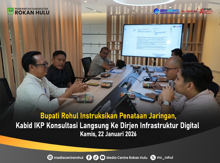 Menindaklanjuti instruksi langsung Bupati Rokan Hulu, Anton, ST, MM, Dinas Komunikasi dan Informatika (Diskominfo) Rohul melakukan konsultasi dan koordinasi ke Dirjen Infrastruktur Digital, Kementerian Komunikasi dan Digital (Komdigi) di Jakarta, Kamis (22/1/2026).