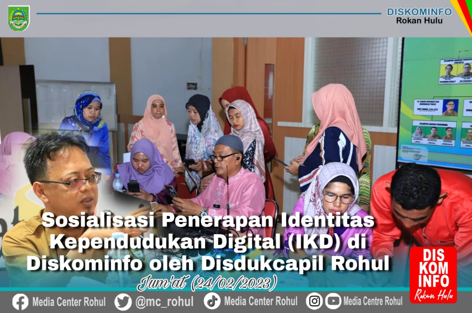 Dan terkait IKD, Diskominfo berkoordinasi dengan Disdukcapil untuk melakukan publikasi dan diseminasi informasi kepada masyarakat dan OPD di Lingkungan pemerintah daerah Kabupaten Rokan Hulu dalam pelaksanaan pelayanan di tempat untuk verifikasi data-data kependudukan ASN dan honorer sehingga bisa di upgrade dalam gadget masing-masing.