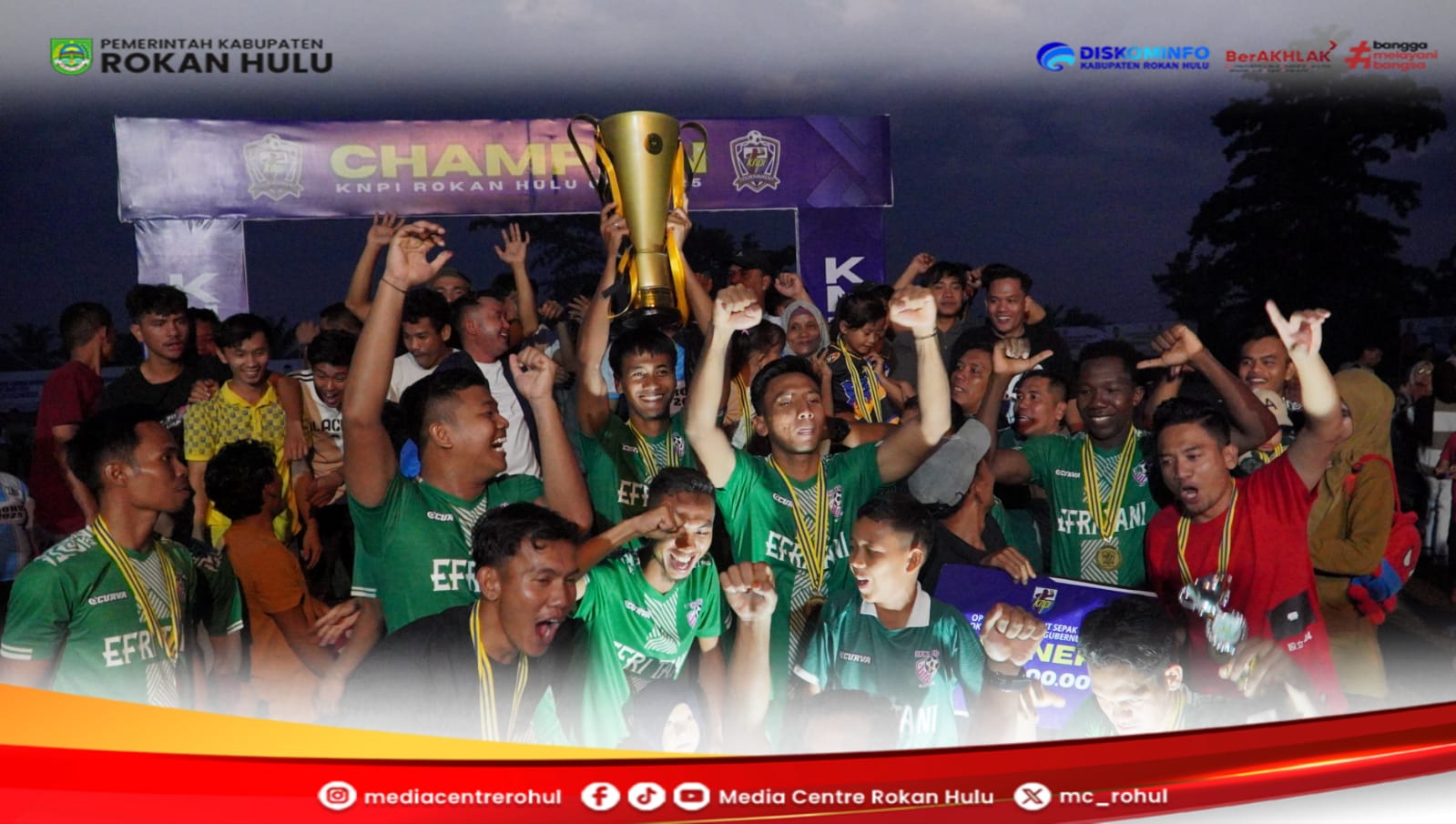 Gol tunggal penentu kemenangan tercipta di babak kedua, membawa Efri FC menorehkan sejarah sebagai juara baru KNPI Cup tahun ini. Partai final ini dihadiri sejumlah tokoh penting, di antaranya Ketua KNPI Provinsi Riau Fuad Santoso, SH, MH, Ketua KNPI Rokan Hulu Avfrian Azhari, S.Par, Kepala Dinas Pemuda dan Olahraga (Dispora) Riau Yurnalis Basri, S.Sos, M.Si, Asisten II Setda Rohul Drs. H. Ibnu Ulya, Ketua Apdesi Rohul Normal Harahap, SH, Kepala BPR Rohul, Wakil Rektor UPP serta Kepala Desa RTH Rudi Hartono.