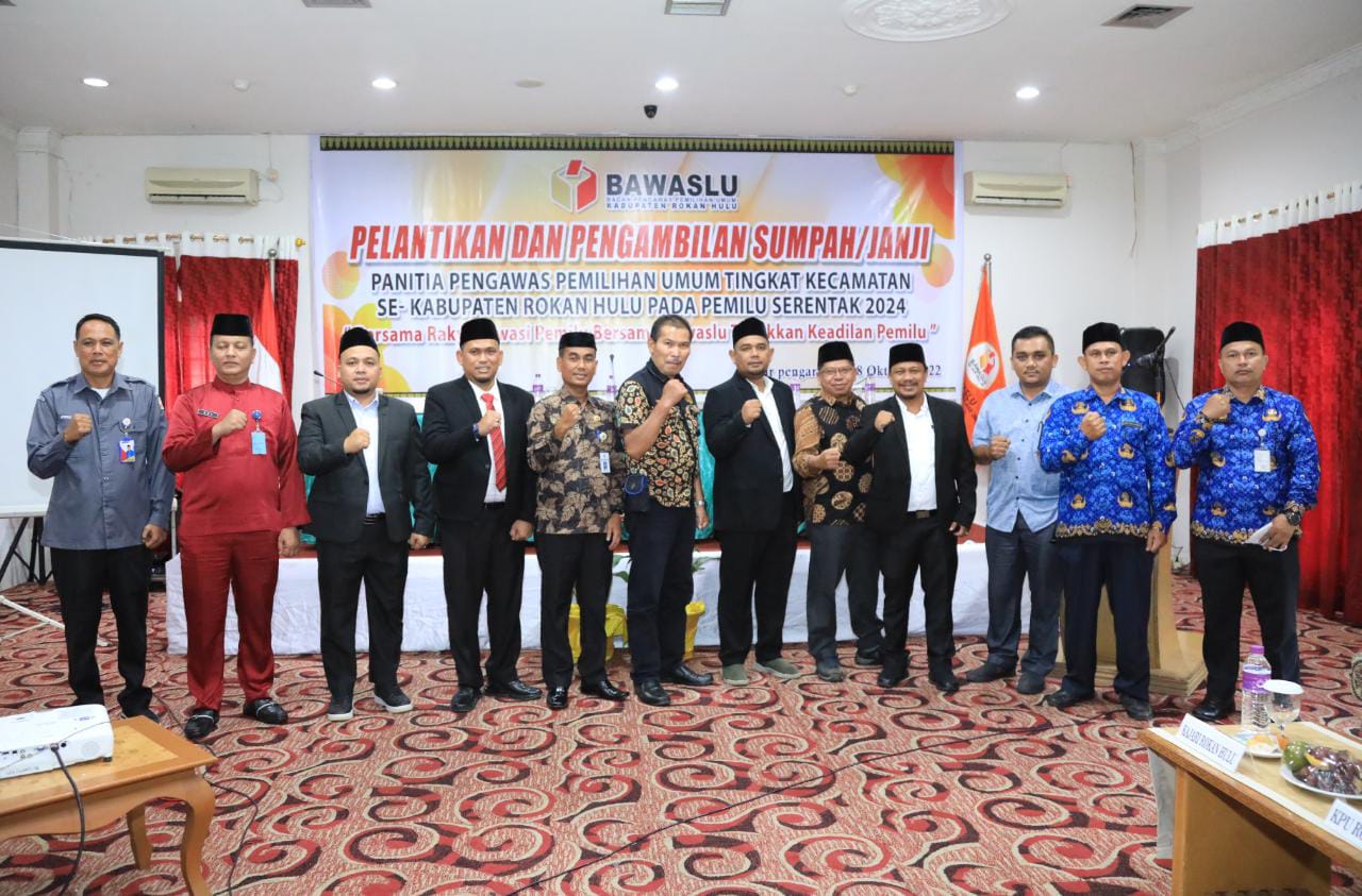 MEDIA CENTER ROHUL – Sebanyak 48 Orang Pengawas pemilihan umum kecamatan(Panwascam) se Rokan Hulu(Rohul) Resmi dilantik Ketua Badan Pengawas Pemilihan Umum(Baswaslu) Rohul Fajrul Islami SH,MH yang diadakan di Sapadia Hotel Pasir Pengaraian Jum,at(28/10/2022)