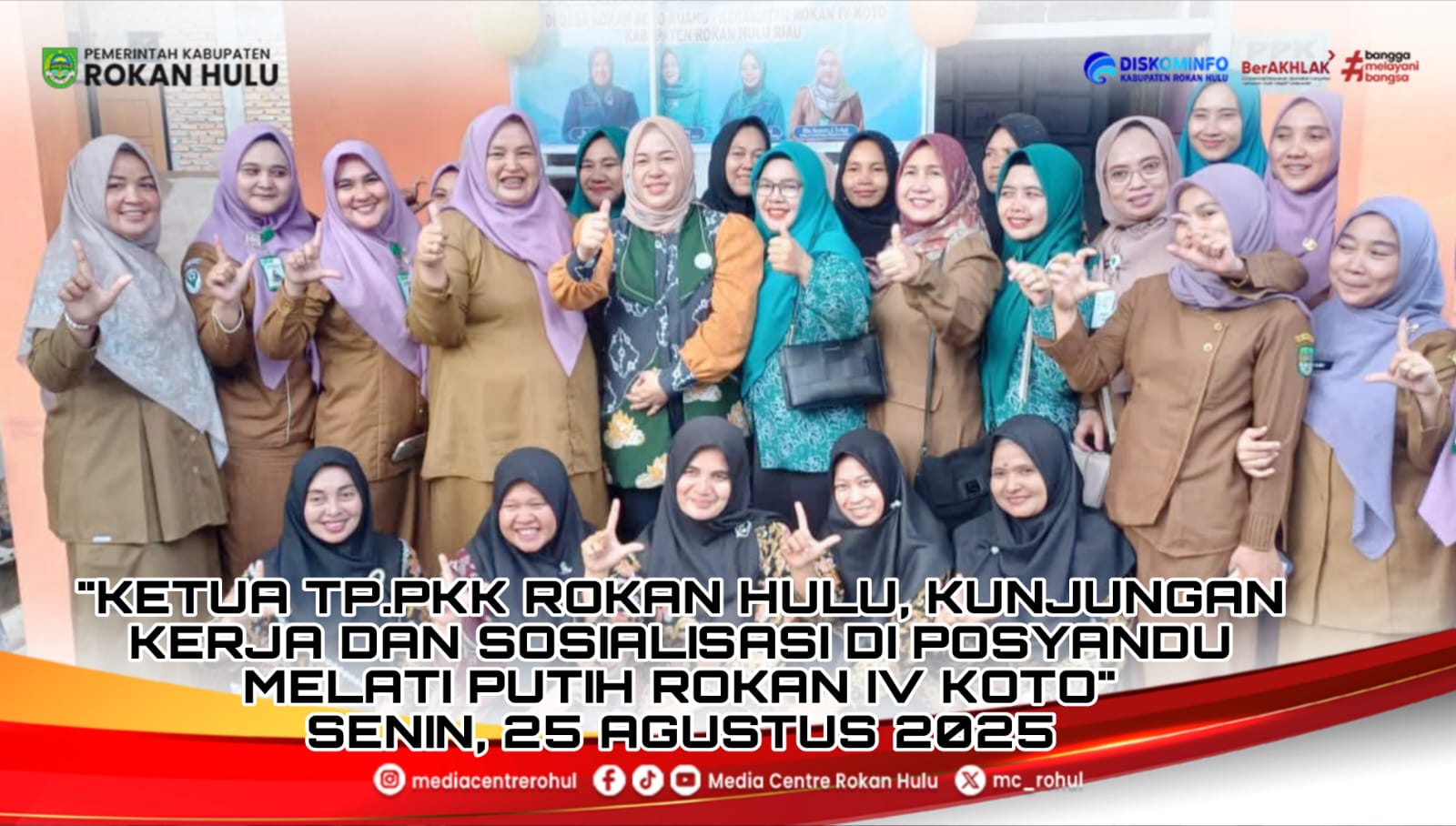Media Center Rohul - Ketua Tim Penggerak PKK Kabupaten Rokan Hulu, dr. Yeni Dwi Putri Anton, lakukan kunjungan kerja ke Posyandu Melati Putih di Desa Koto Ruang, Kecamatan Rokan IV Koto, Senin (25/08/2025), dalam rangka mendukung kegiatan posyandu balita dan lansia serta pelayanan kesehatan masyarakat setempat.