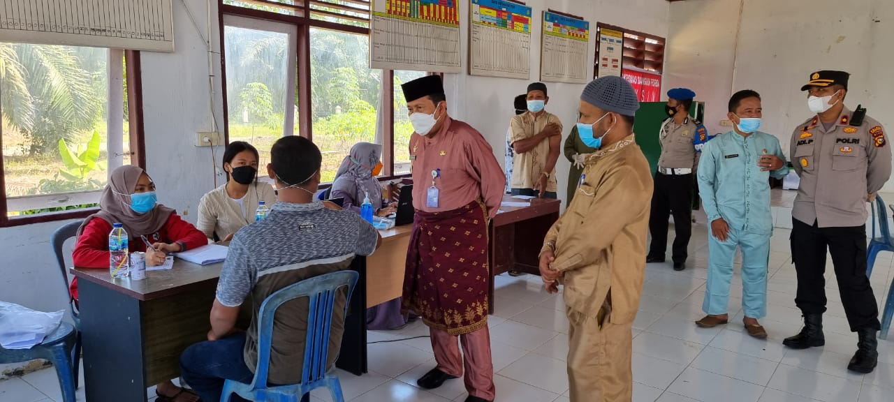 MEDIA CENTER ROHUL - Pasca dilantik sebagai Bupati Rokan Hulu (Rohul), Senin (21/6/2021), H. Sukiman mulai melakukan kunjungan kerja perdananya ke desa, untuk memastikan pelaksanaan Vaksinasi Covid-19 dan mengedukasi warga bahwa vaksinasi tersebut aman, halal dan efektif untuk meningkatkan kekebalan tubuh masyarakat.