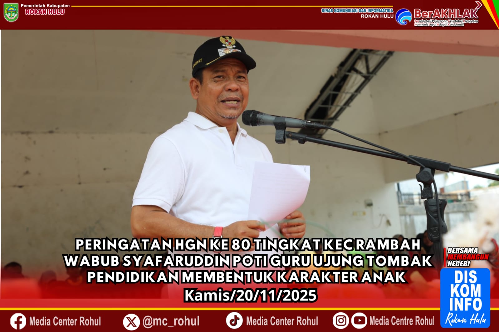 Wakil Bupati Rokan Hulu H. Syafaruddin Poti mengatakan Hari Guru Nasional ini bukan hanya sekedar peringatan tahunan tapi juga momentum untuk kembali meneguhkan peran penting guru.