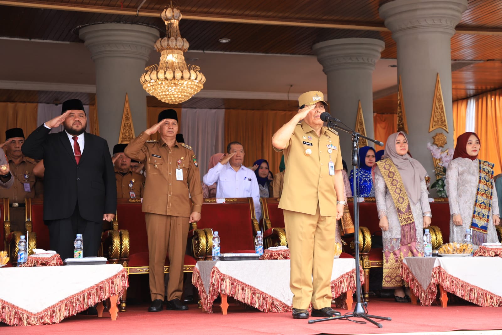 MEDIA CENTER ROHUL - Bupati Rokan Hulu H. Sukiman bertindak selaku Inspektur Upacara pada Acara Peringatan Hari Ibu (PHI) ke-94 dengan tema "Perempuan Berdaya Indonesia Maju" Tingkat Kabupaten Rokan Hulu yang dilaksanakan dihalaman Kantor Bupati Rokan Hulu, Selasa (27/12/2022) pagi.