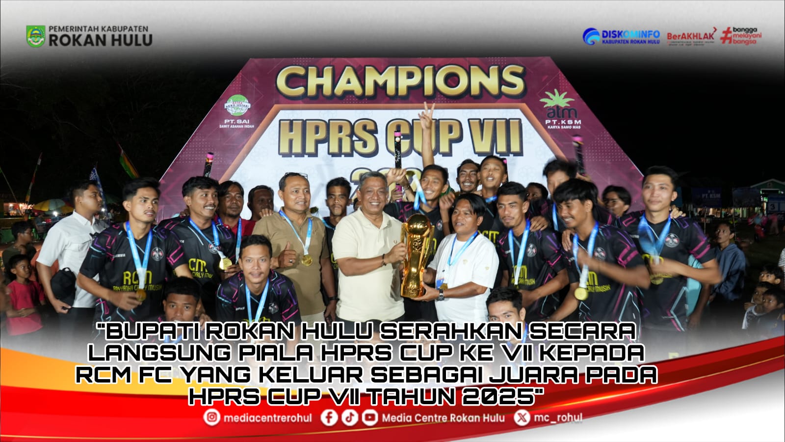 Dengan keberhasilan RCM FC merebut gelar juara, HPRS Cup VII tahun 2025 resmi ditutup. Turnamen ini diharapkan menjadi pemacu semangat generasi muda untuk terus berprestasi dan mengharumkan nama Rokan Hulu melalui dunia olahraga.(JK/MCDiskominfo)