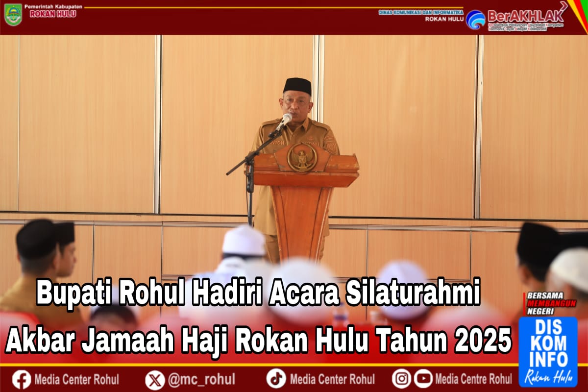 Media Center Rokan Hulu - Bupati Rokan Hulu Anton ST, MM membuka acara Silaturahim Akbar jamaah haji asal Kabupaten Rokan Hulu di Pendopo Rumah Dinas Bupati Rokan Hulu, Senin (25/08/2025)
