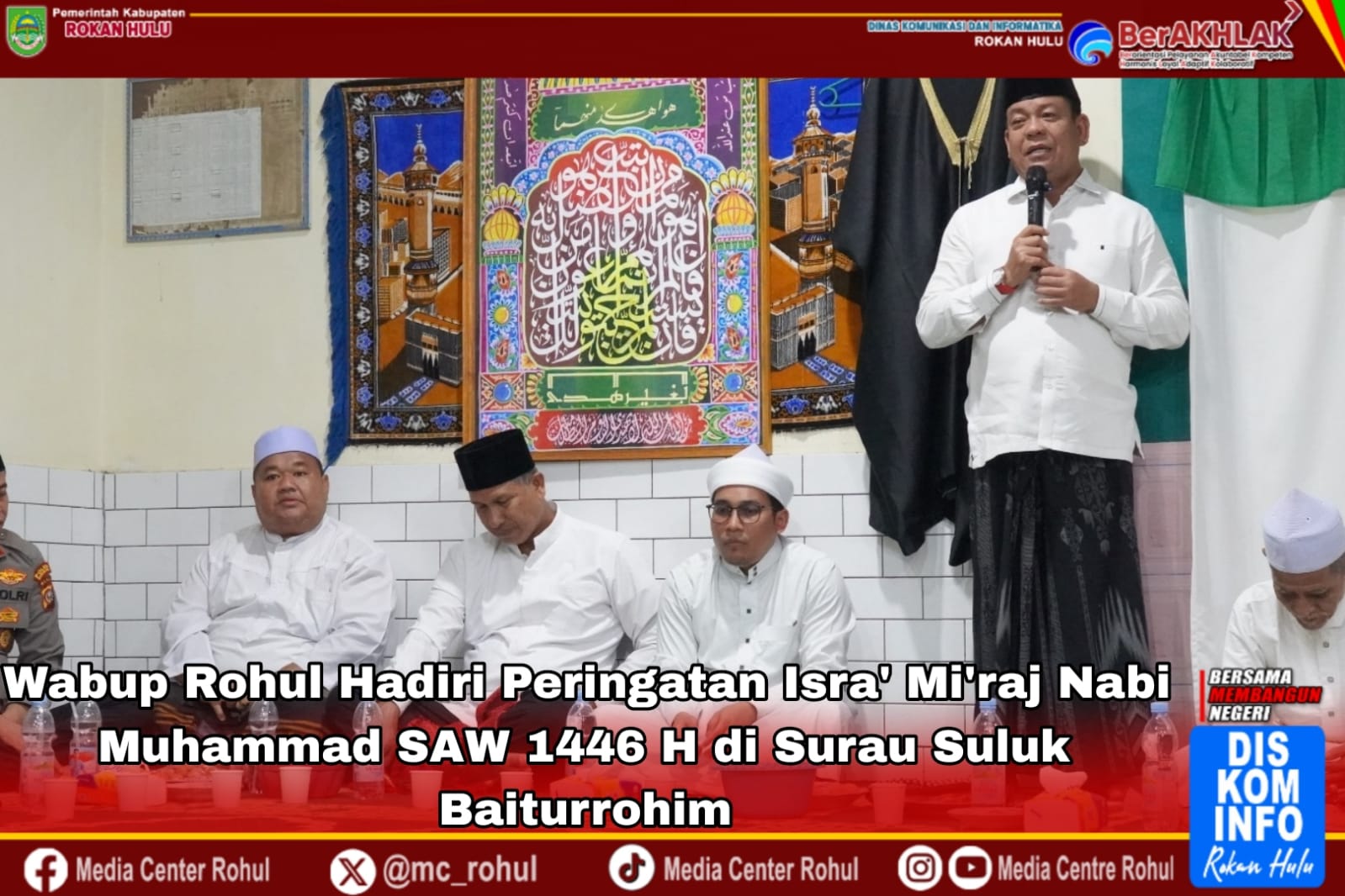 Media Center Rohul – Wakil Bupati (Wabup) Rokan Hulu (Rohul), H. Syafaruddin Poti, S.H., M.M, menghadiri peringatan Isra’ Mi’raj Nabi Muhammad SAW 1447 Hijriah yang dilaksanakan di Surau Suluk Baiturrohim, Desa Teluk Bintungan, Desa Rambah Tengah Hilir, Kecamatan Rambah, pada Jum’at (23/01/2026).