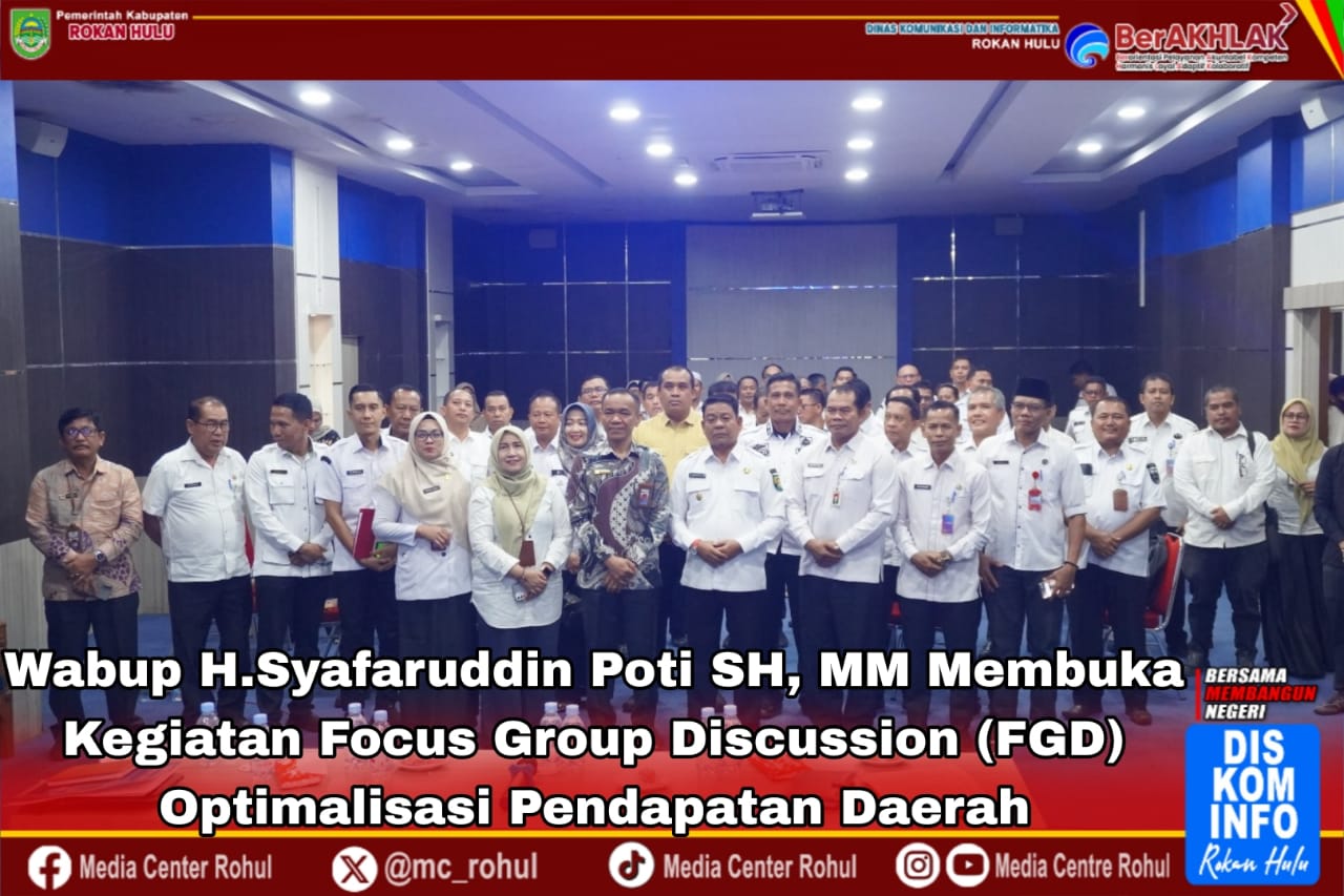 Media Center Rohul - Wakil Bupati Rokan Hulu H. Syafaruddin Poti, SH, MM membuka Kegiatan Focus Group Discussion (FGD) Optimalisasi Pendapatan Daerah di Ruang Rapat Lantai III kantor Bupati Rokan Hulu, Rabu (10/12/2025).