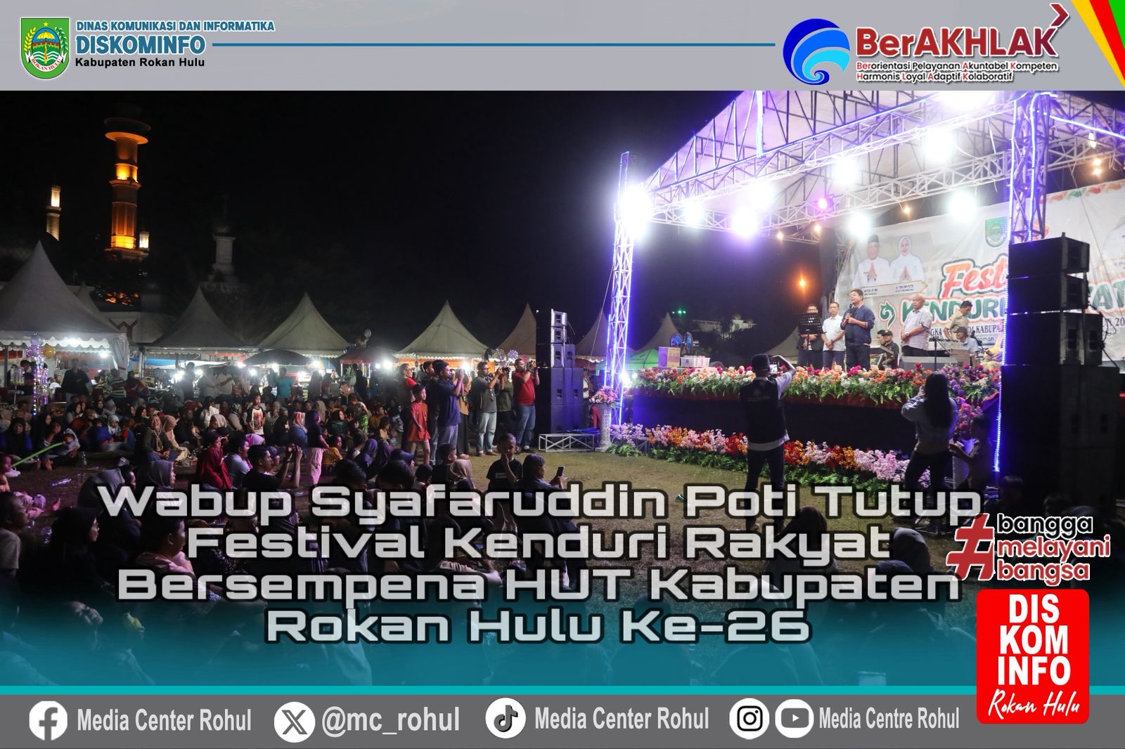 Media Center Rohul - Bersempena Hari Ulang Tahun Kabupaten Rokan Hulu (Rohul) Ke-26, Pemerintah Kabupaten (Pemkab) Rohul tutup secara resmi Festival Kenduri Rakyat, Minggu (26/10/2025).