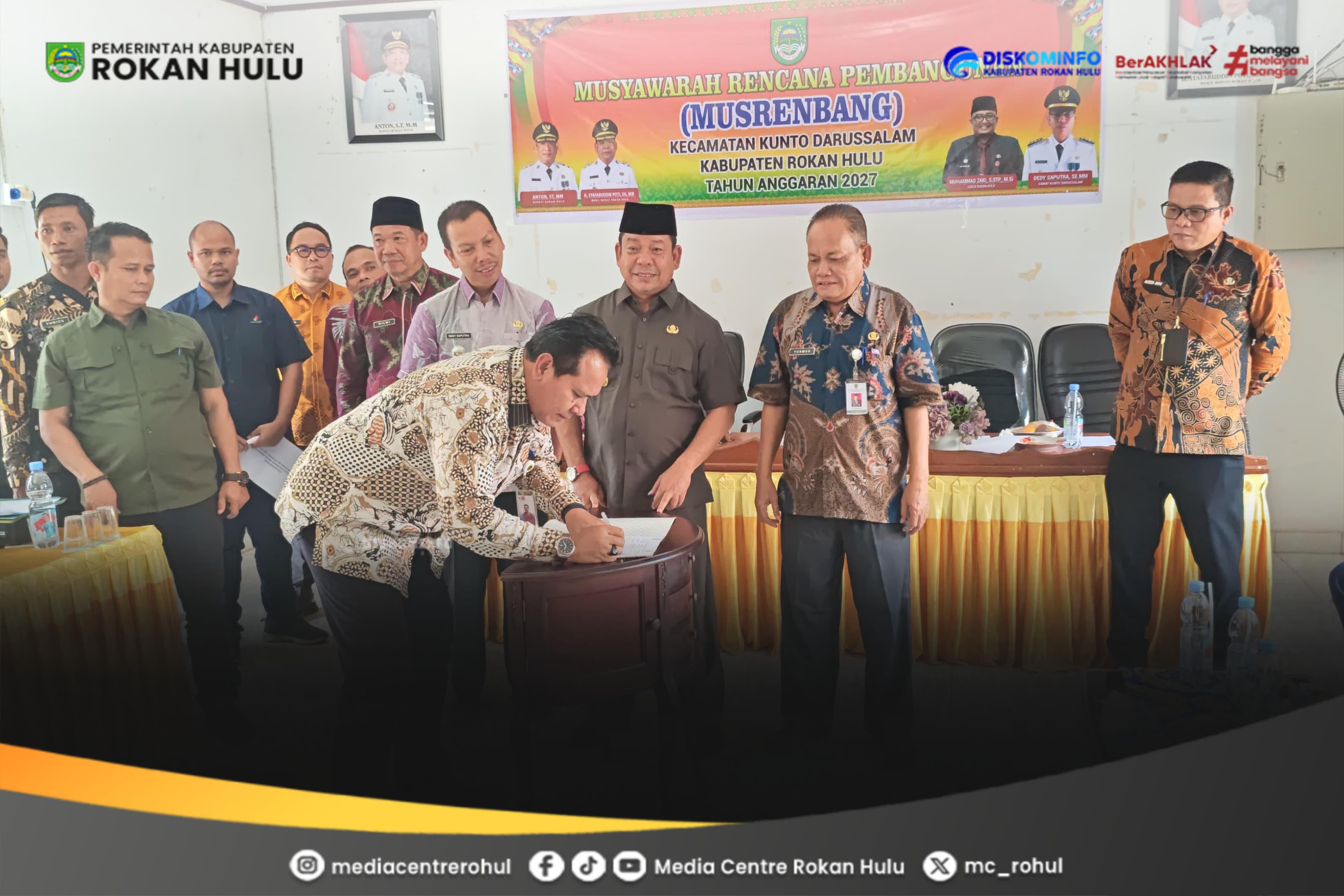 Media Center Rohul - Wakil Bupati Rokan Hulu (Rohul) H. Syafaruddin Poti, S.H, M.M hadiri Musyawarah Rencana Pembangunan (Musrenbang) Kecamatan Kunto Darussalam, Aula Kantor Camat pada Kamis (05/02/2026).