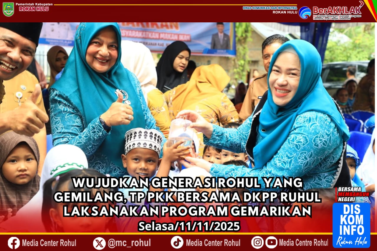 Media Center Rohul - Pemerintahan Kabupaten (Pemkab) Rokan Hulu (Rohul) melalui Dinas Ketahanan Pangan dan Perikanan (DKPP) laksanakan kegiatan penyaluran bahan baku industri pengolahan ikan melalui program Gerakan Memasyarakatkan Makan Ikan (Gemarikan) di Desa Suka Maju Kecamatan Rambah , Selasa (11/11/2025).